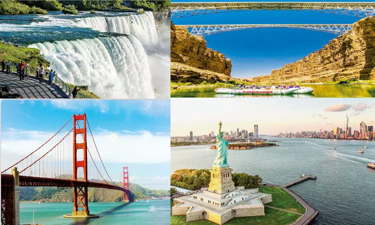 அமெரிக்காவில், சான் பிரான்சிஸ்கோவில் உள்ள கோல்டன் கேட் பாலம் உலகளவில் பார்வையாளர்களால் ஈர்க்கப்படும் நான்காவது அடையாளமாகும். உலகளவில் மிகவும் பிரபலமான பாலங்களில் ஒன்றான இது 15 மில்லியன் வருடாந்திர பார்வையாளர்களை தன்வசப்படுத்தியுள்ளது. மேலும் 6 மில்லியனுக்கும் அதிகமான கூகுள் தேடல்களை கொண்டுள்ளது.
